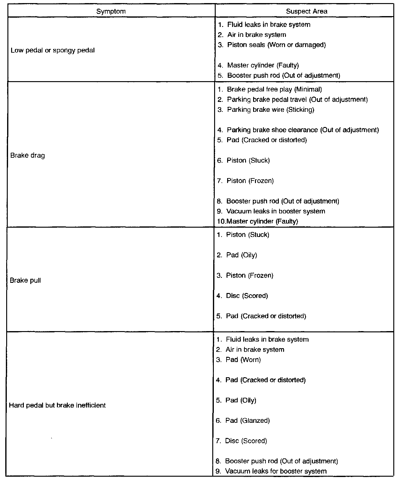 PROBLEM SYMPTOMS TABLEPart 1 Of 2: