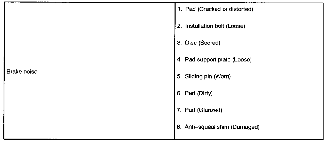 HINT: Refer to the table to help locate find the cause of the problem. The numbers indicate the priority of the possible cause of problem. Check each part in the order. If necessary, replace these parts.