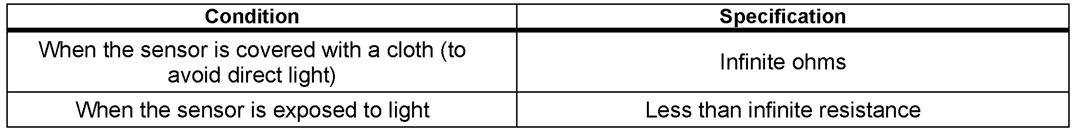 b. Measure the resistance between terminals 2 and 3 of the solar sensor under the following conditions: