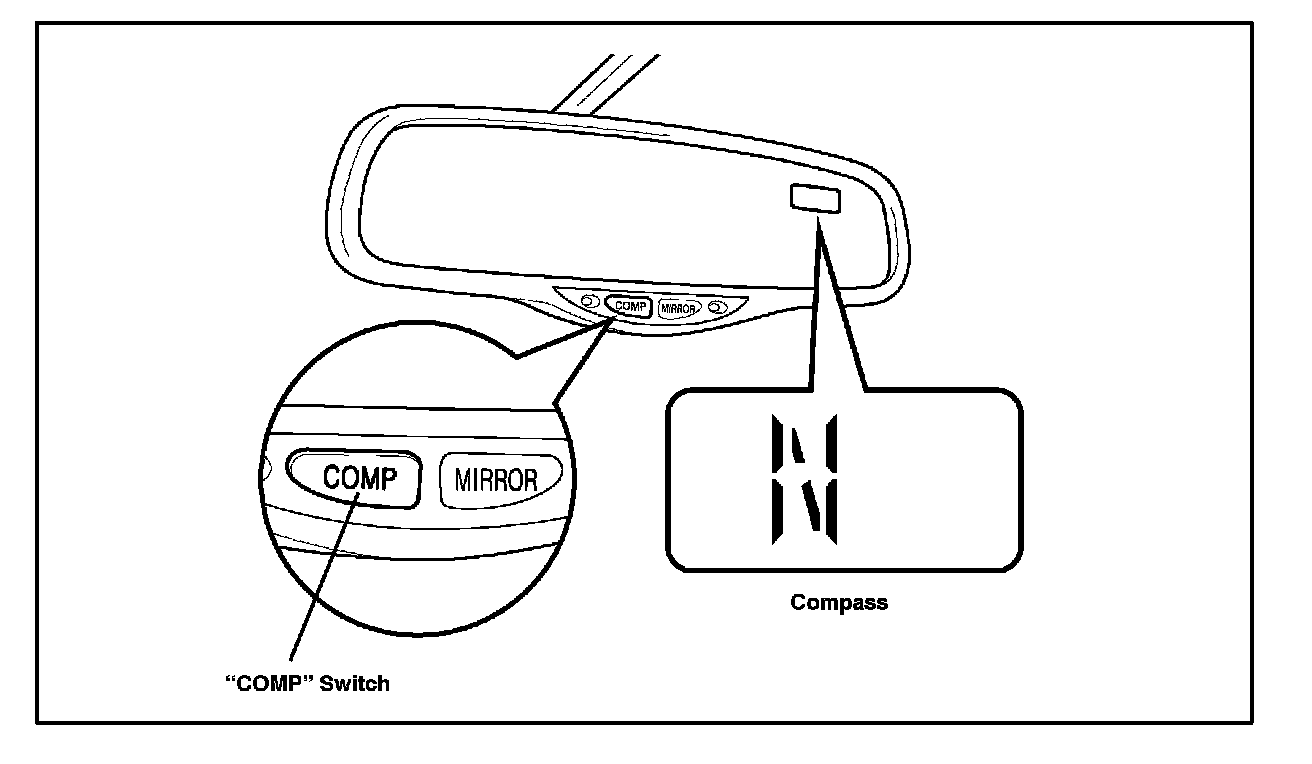 1. Turn the ignition switch to the "ON" position and check that the direction (N, NE, E, SE, S, SW, W, NW) appears on the compass display.