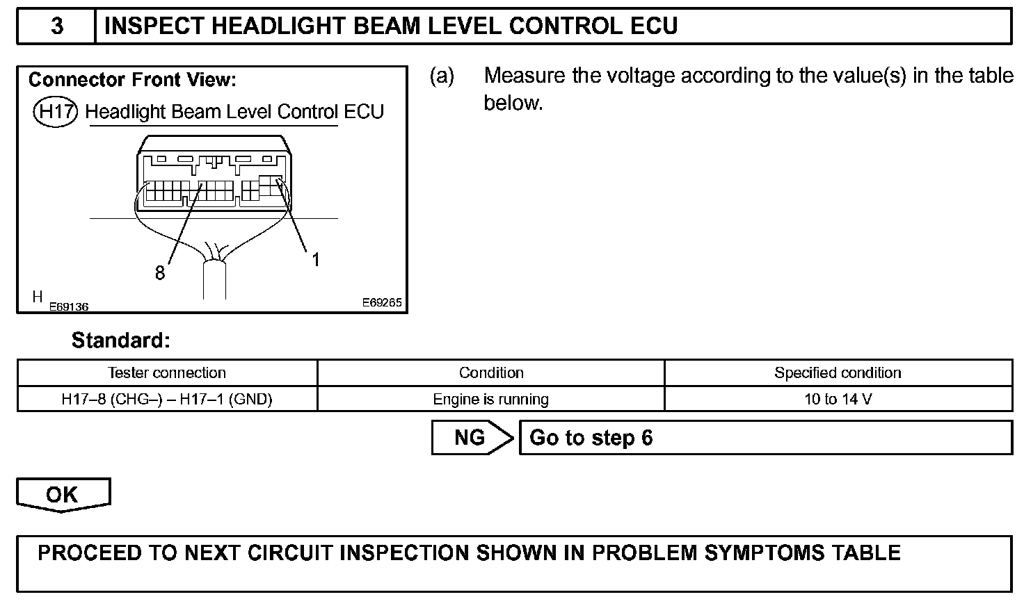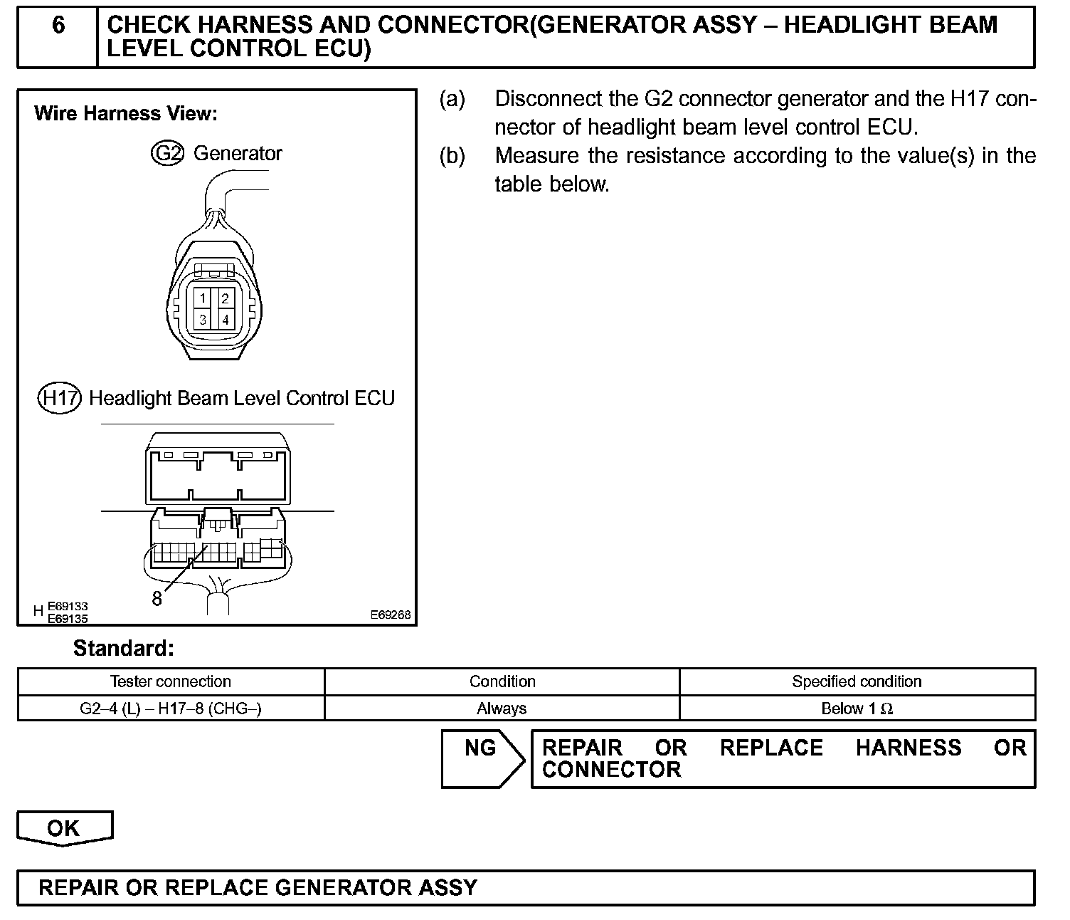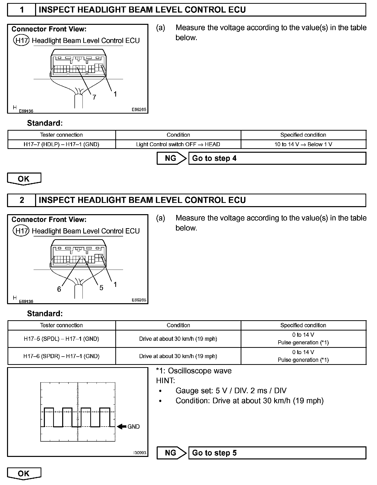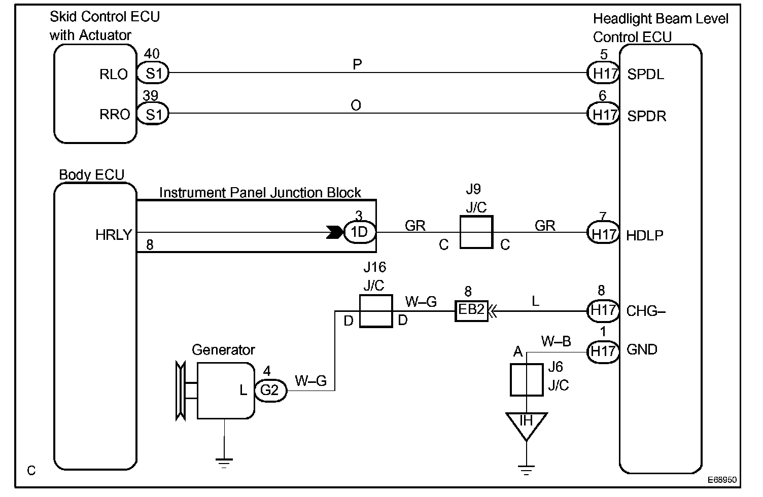 Headlight beam level control ECU receives the vehicle speed signal from the skid control ECU, and engine condition from the generator assy.
