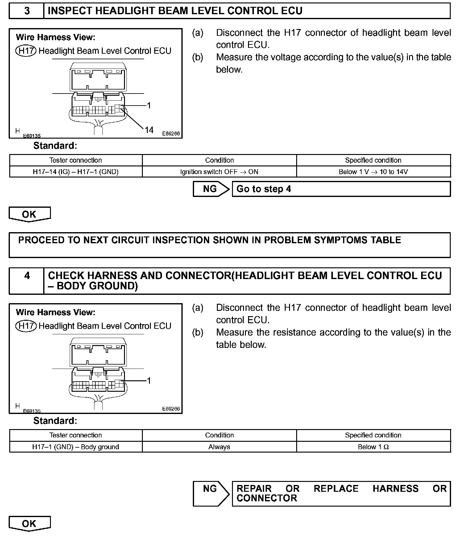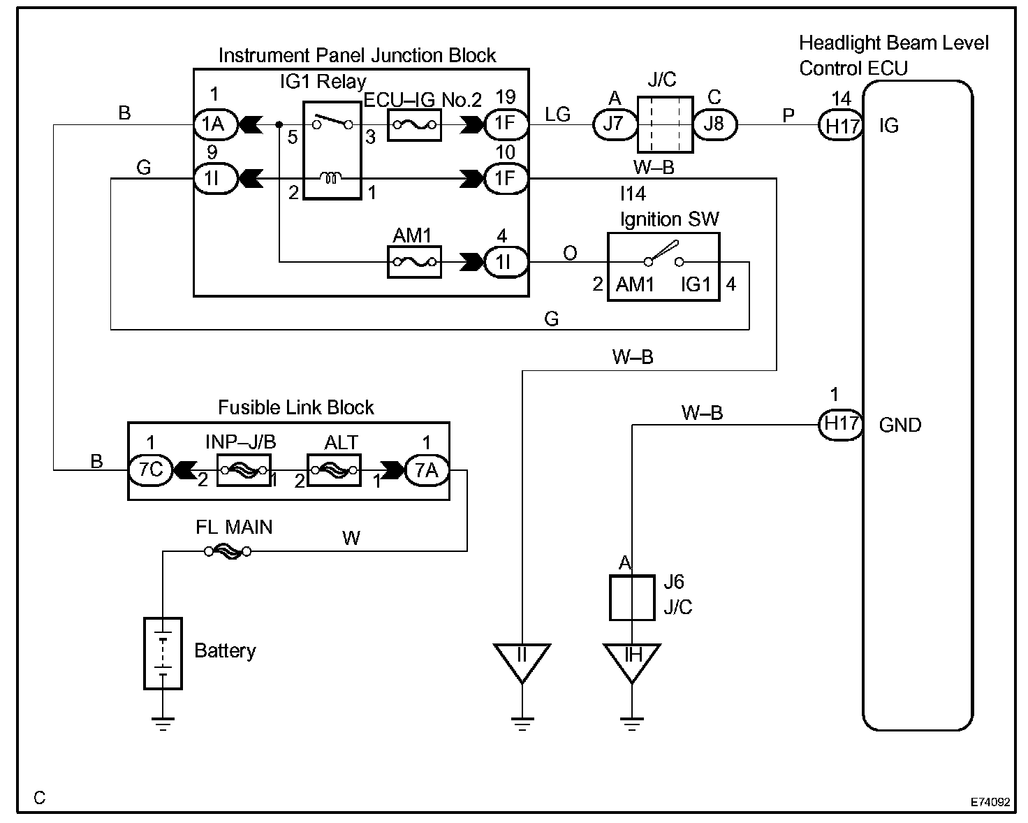 Headlight Beam Level Control ECU Power Source Circuit