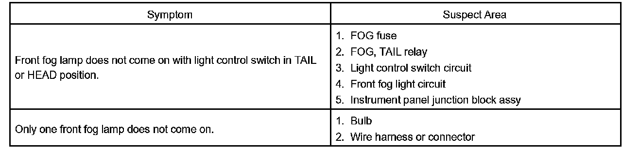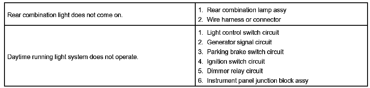 Problem Symptoms Table - Headlamp And Tail Lamp System Part 2: