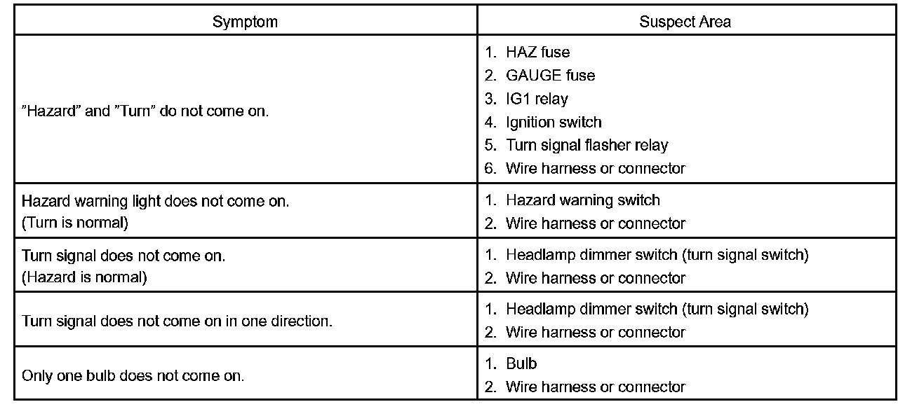 Problem Symptoms Table - Turn Signal And Hazard Warning System:
