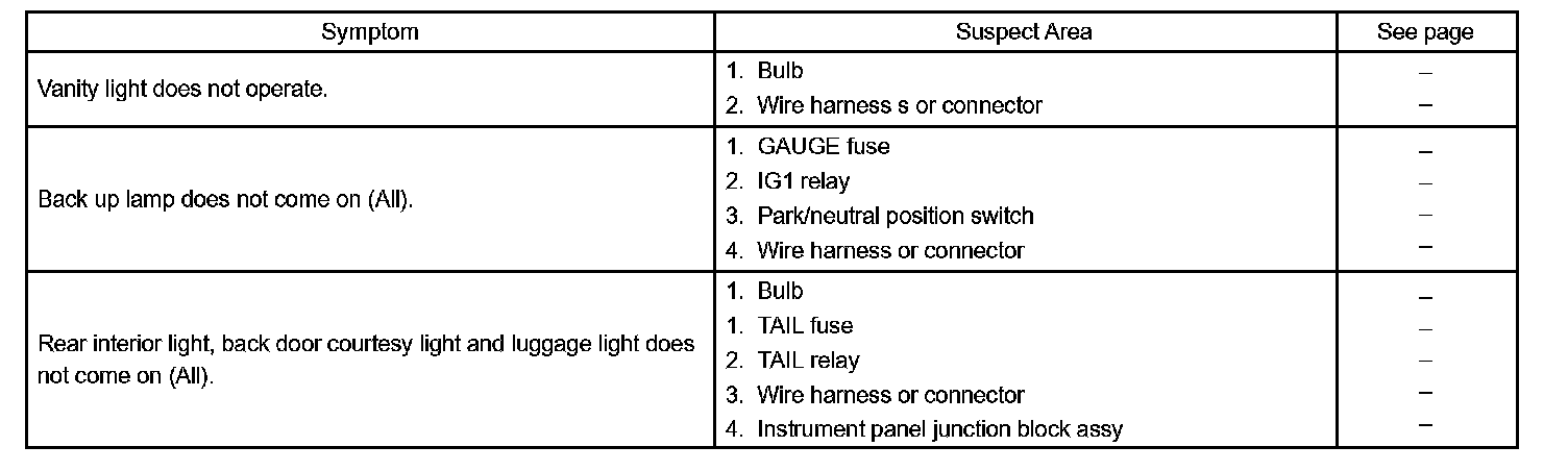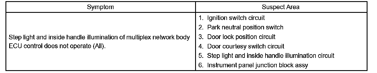 Problem Symptoms Table - Step Light And Inside Handle Illumination System: