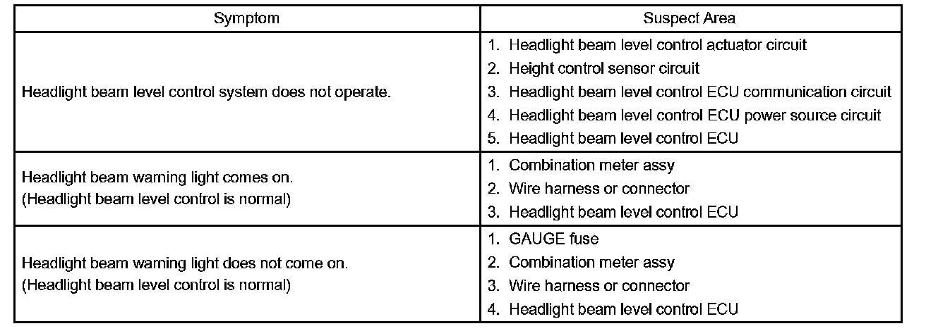 Problem Symptoms Table - Headlight Beam Level Control System: