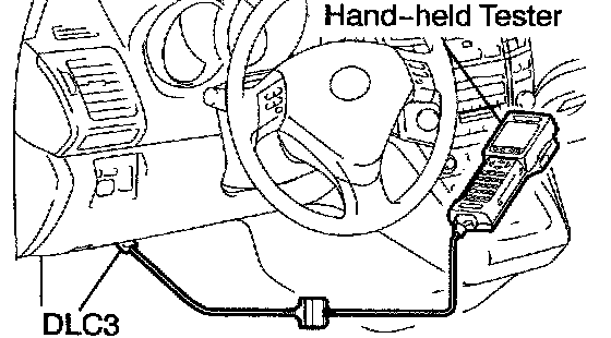 b. Connect the hand-held tester to the DLC3, then turn the ignition switch to the ON position.