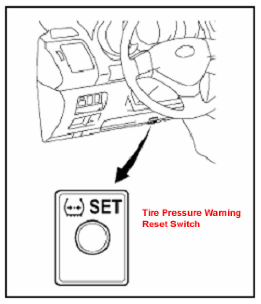 3. Press the tire pressure warning initialization switch for 3 seconds until the low tire pressure warning light blinks 3 times in 6 seconds (one blink per two seconds). After that, make sure the tire pressure warning light goes off.