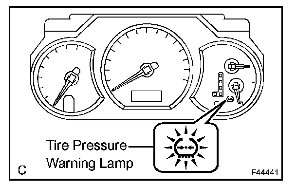 a. When the tire pressure warning lamp comes on, immediately check the air pressure of the tire and adjust it to the specified pressure. When the ignition switch is turned OFF. The tire pressure warning lamp goes off.