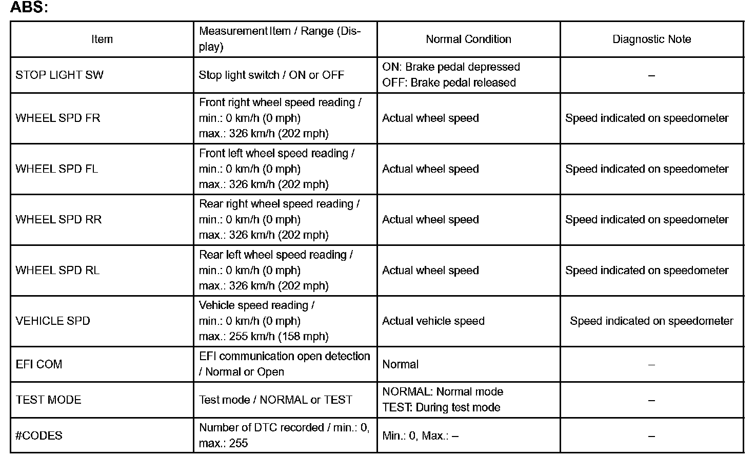 DATA LISTHINT: By accessing the ABS DATA LIST displayed by the hand-held tester, you can read the value of the switches and sensors without removing any parts. Reading the DATA LIST is the first step of troubleshooting is one method to shorten labor time.