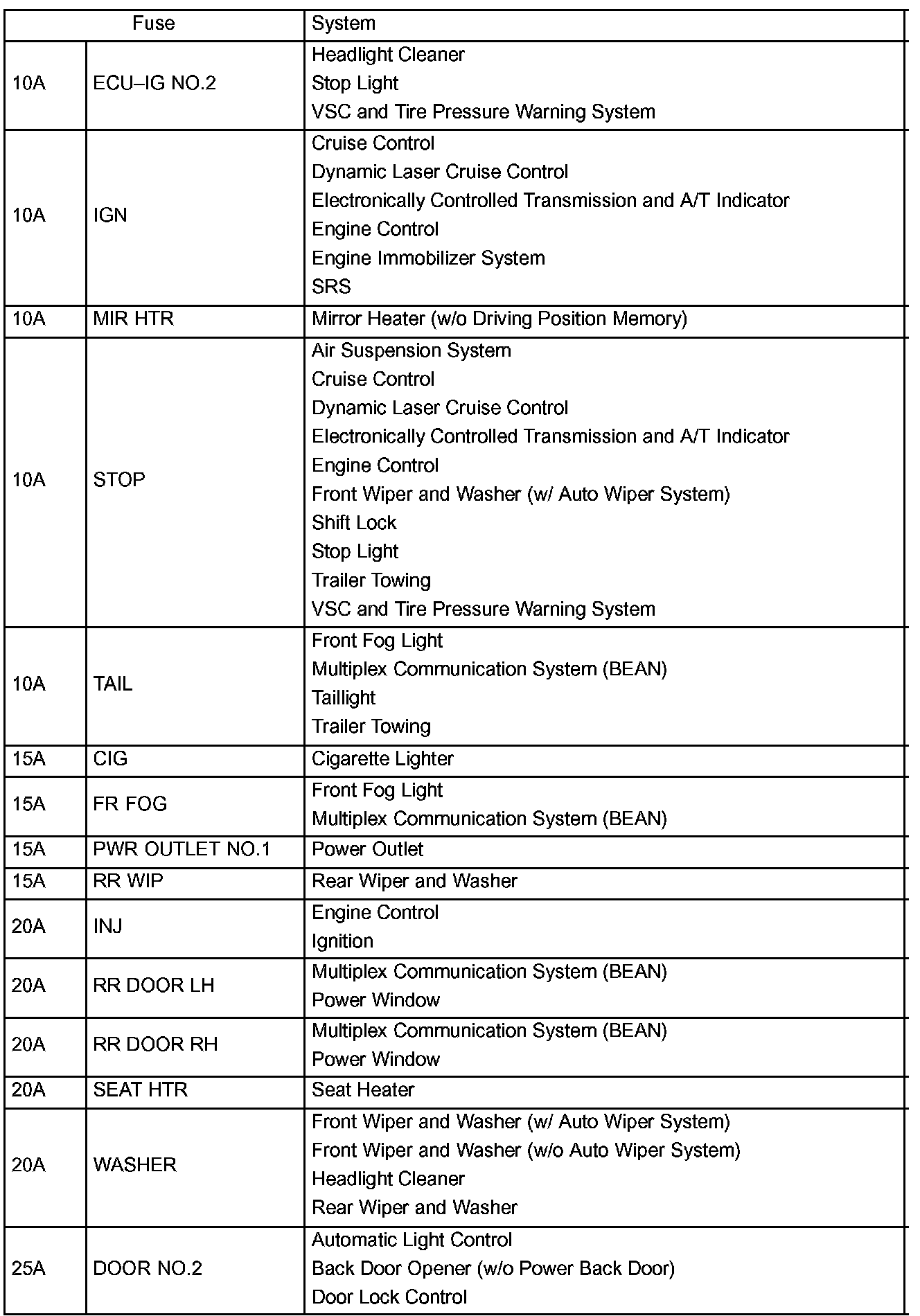 Instrument Panel J/B Fuse ID