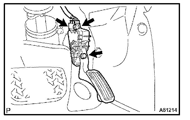 b. Remove the 2 bolts, and then remove the accelerator pedal rod.