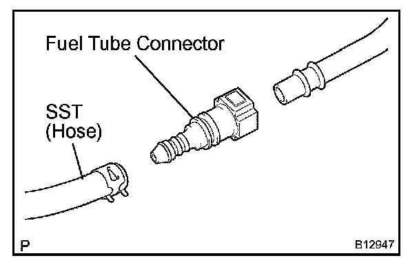 2. Connect SST and the fuel tube connector to the fuel pipe.
