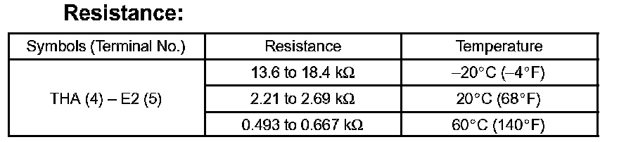 1. Using an ohmmeter, measure the resistance between terminals 4 (THA) and 5 (E2).