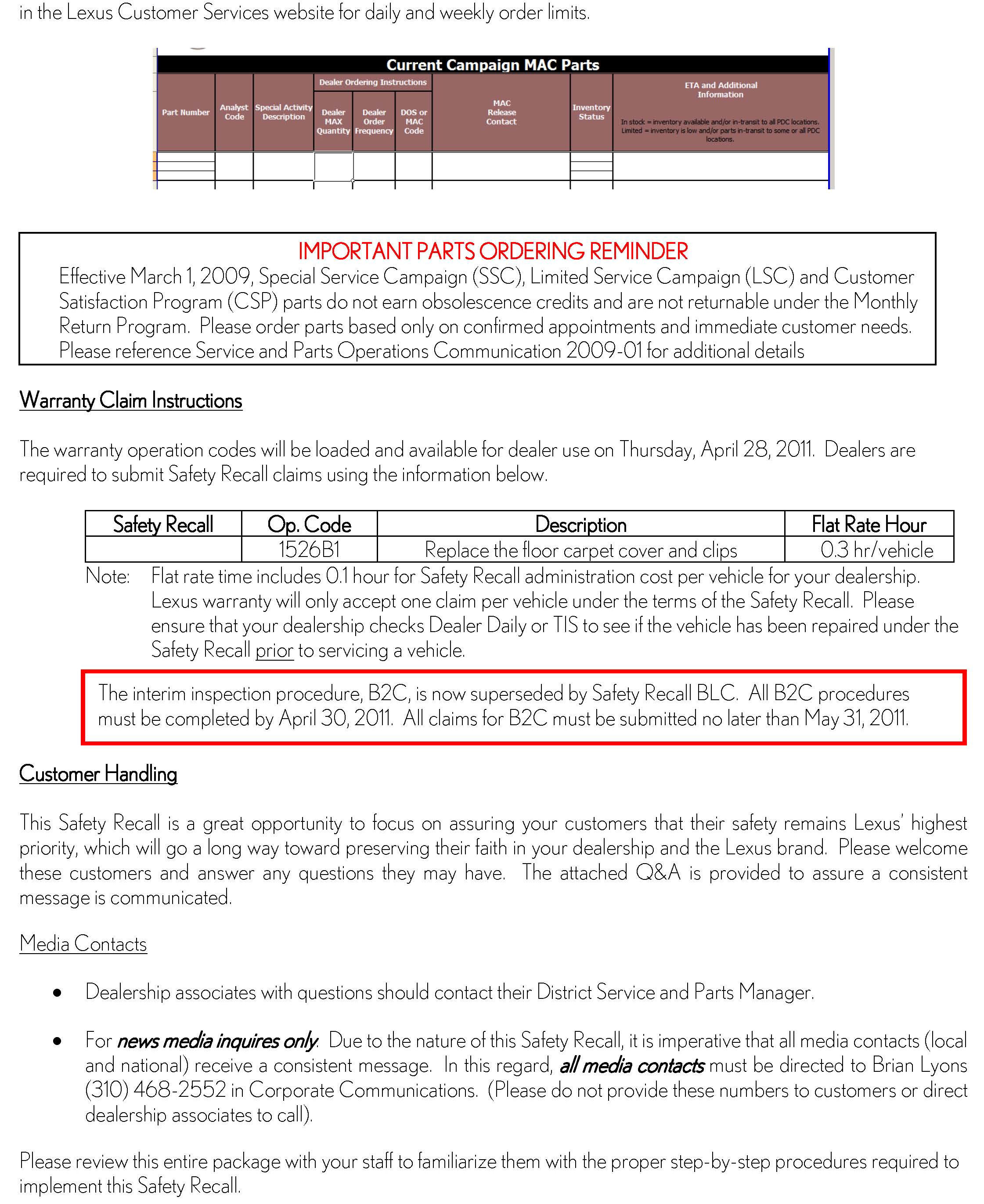 Technical Service Bulletins