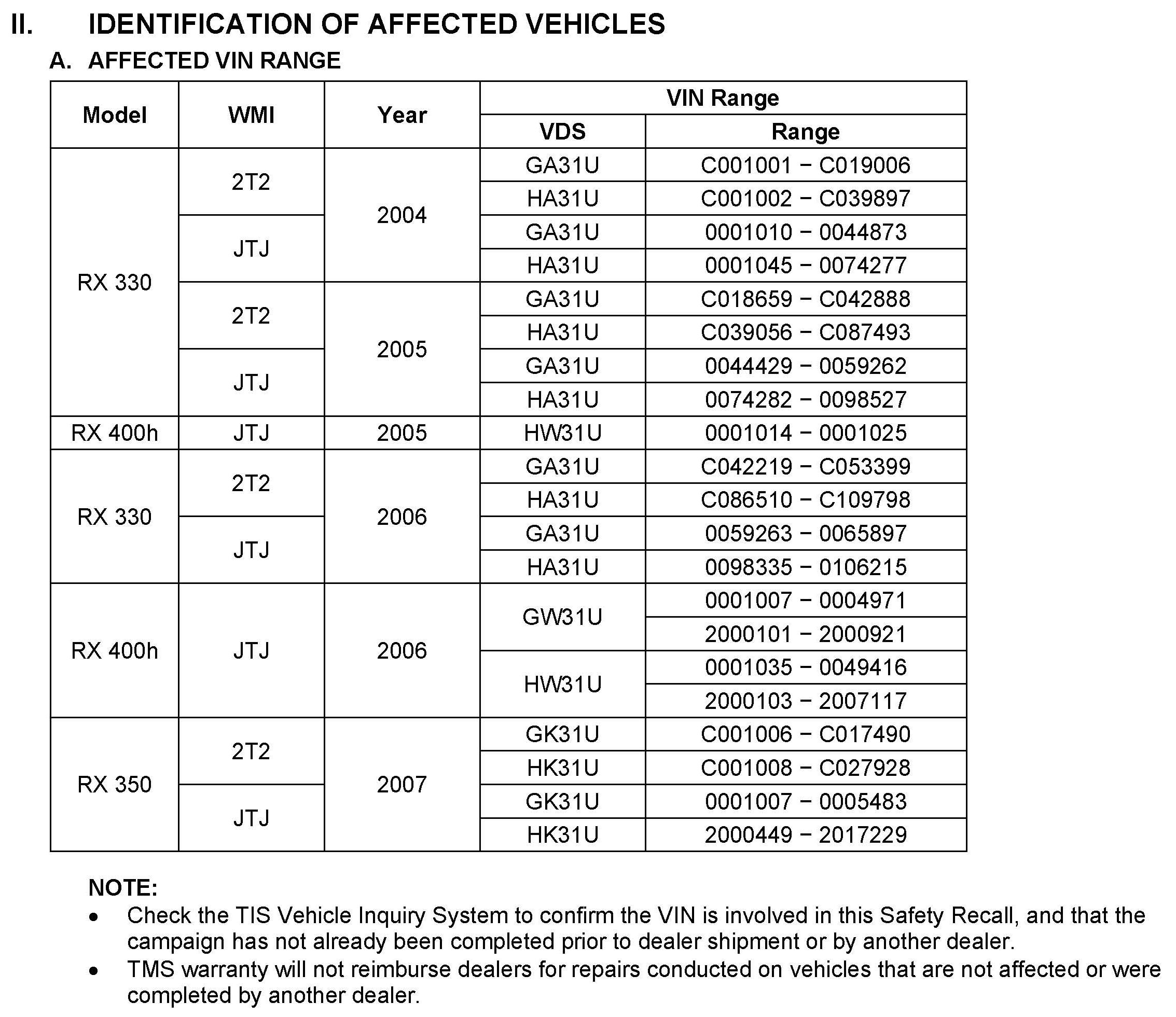 RX 330 FWD V6-3.3L (3MZ-FE)
