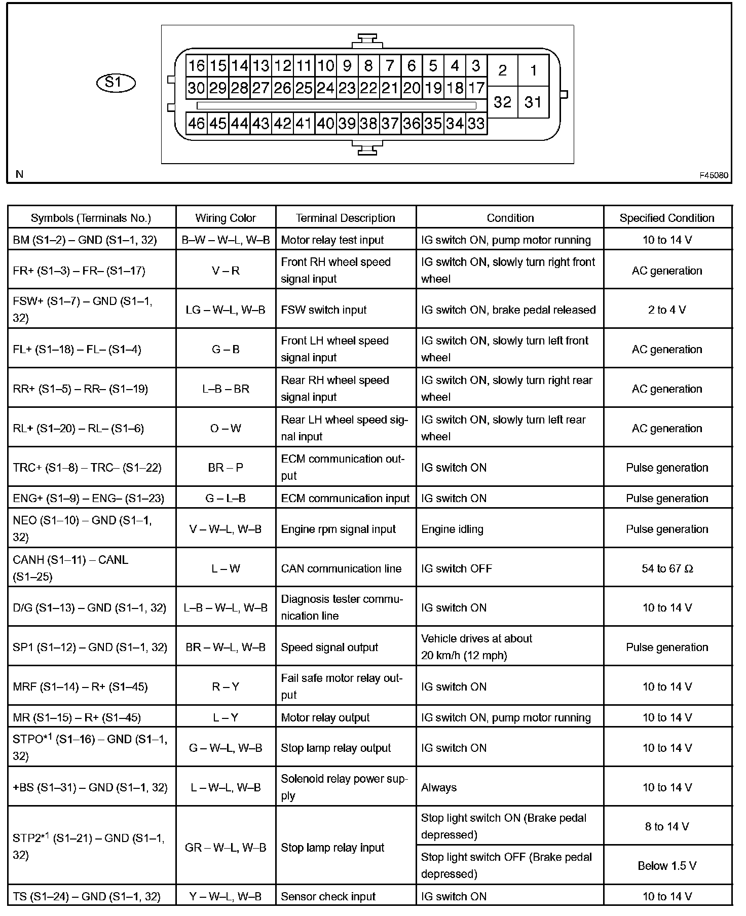 Terminals Of Control Module/Pinouts - Skid Control ECU Part 1:
