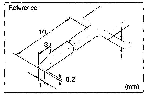 HINT: To remove the terminal from the connector, please construct and use the special tool or like object shown on the left.