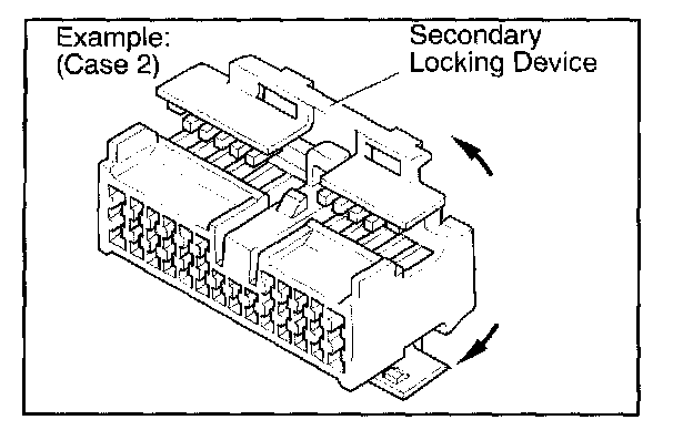 a. Locking device must be disengaged before the terminal locking clip can be released and the terminal removed from the connector.