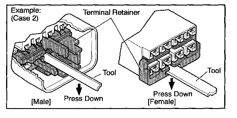 Type which cannot be pulled as far as Power Lock insert the tool straight into the access hole of terminal retainer as shown.