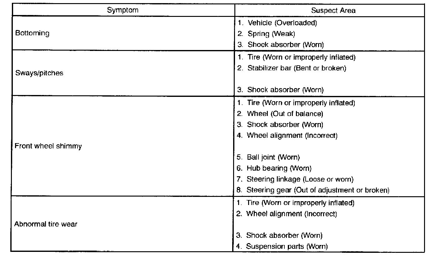 PROBLEM SYMPTOMS TABLE