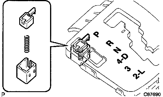 a. Remove the shift lock release link, spring and cover from the position indicator housing.