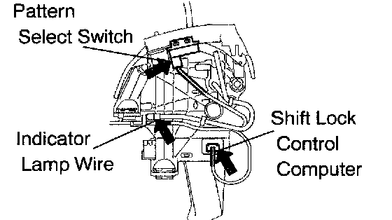 b. Install the pattern select switch connector, the shift lock control computer connector and the indicator lamp wire connector.