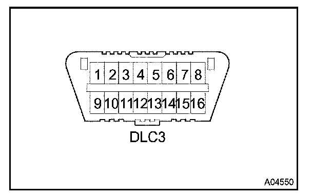 Inspect the DLC3The vehicle's ECM uses ISO 9141-2 for communication. The terminal arrangement of DLC3 complies with SAE J1962 and matches the ISO 9141-2 format.