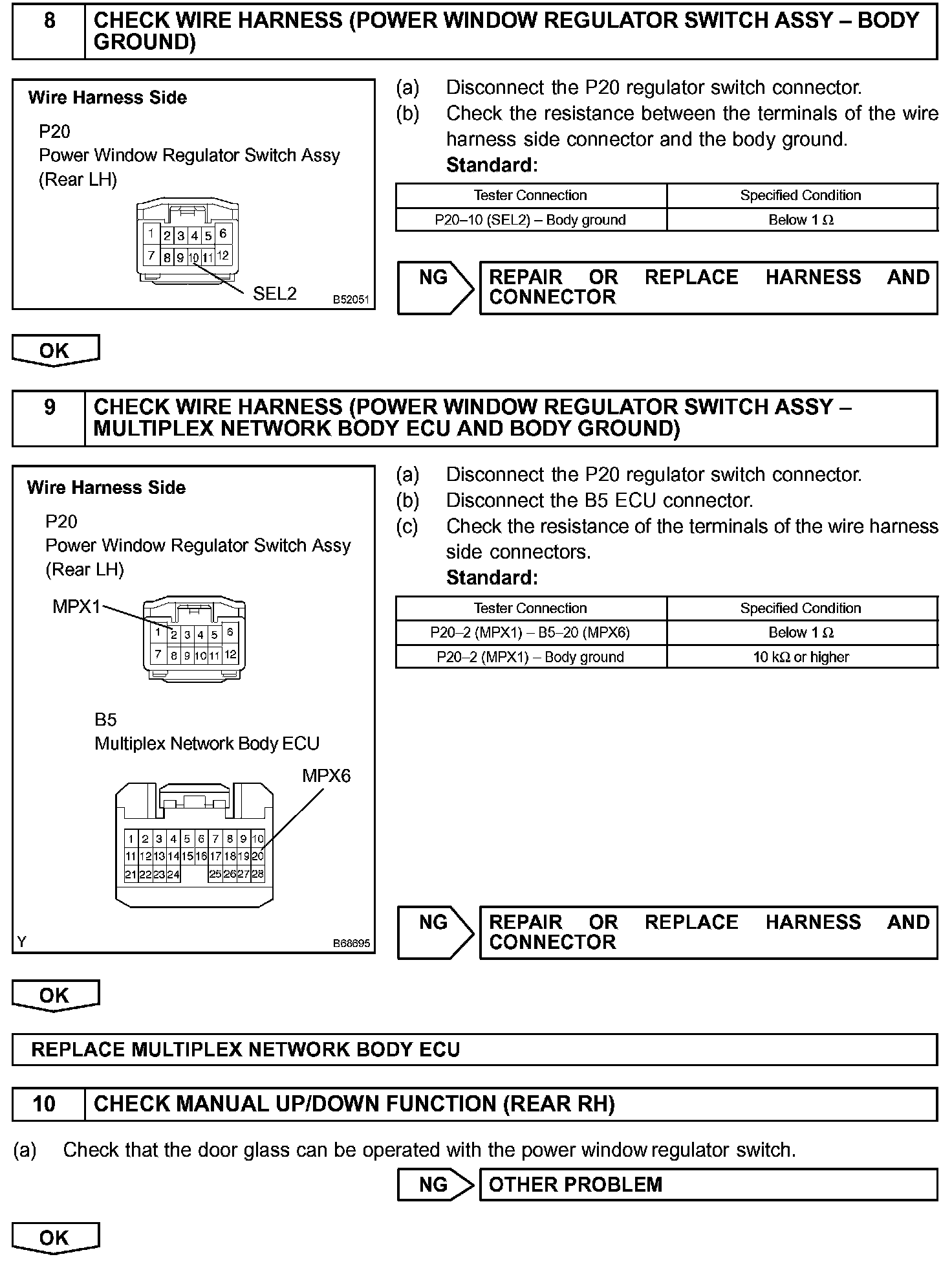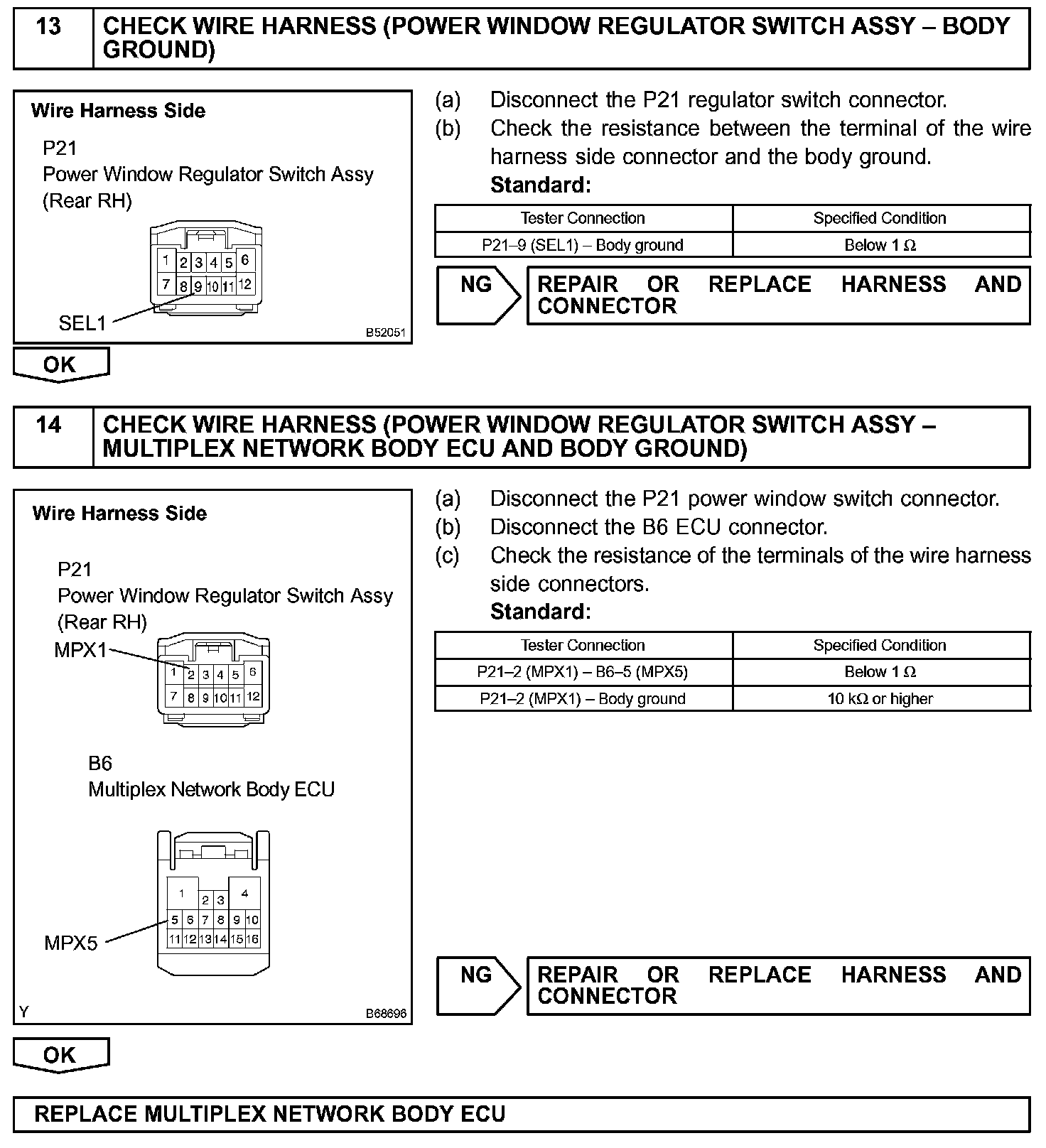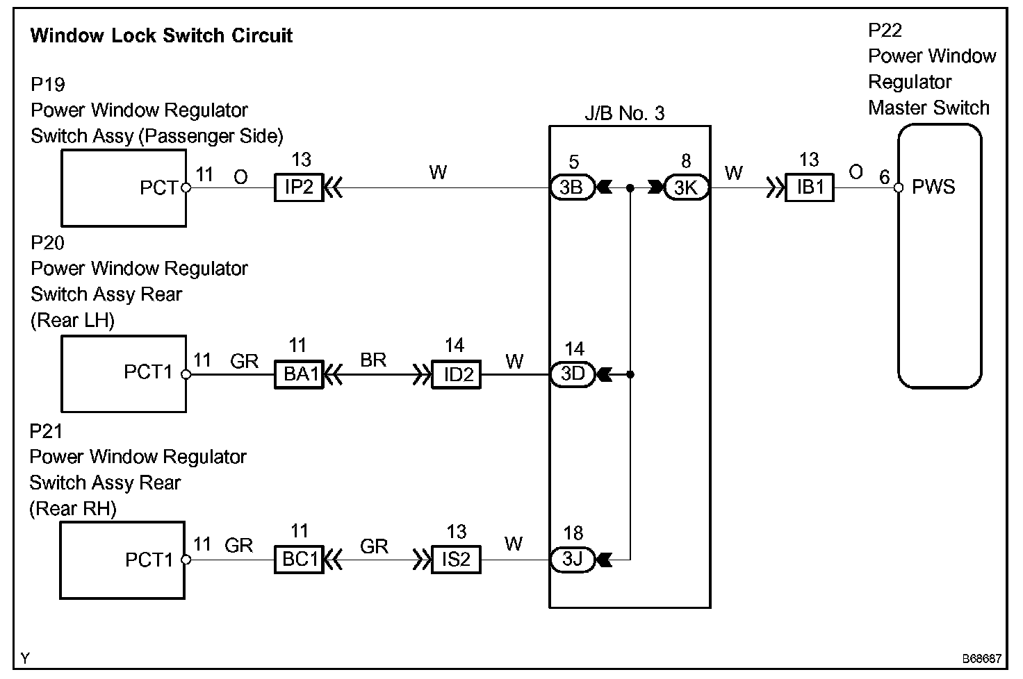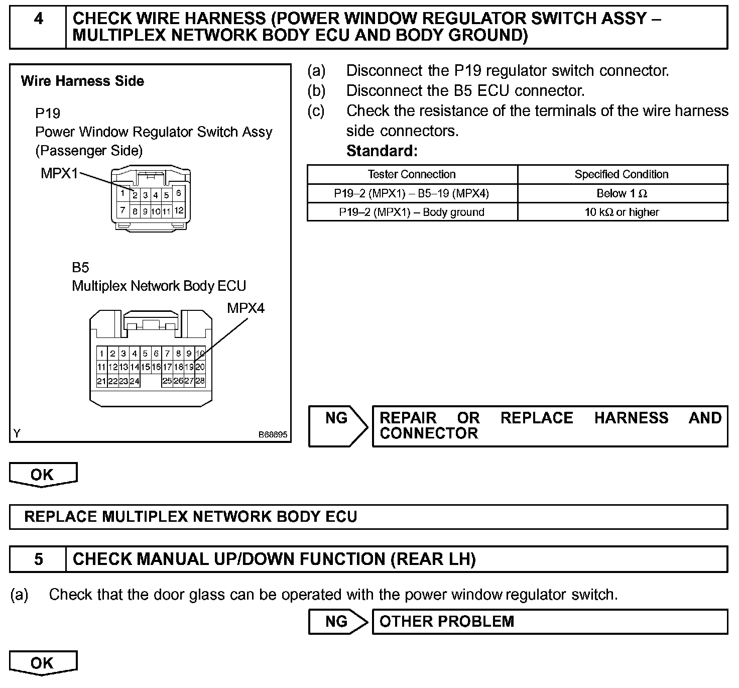 HINT: Check which power window cannot be operated, and then proceed with troubleshooting procedures for the applicable power window as shown in the table.