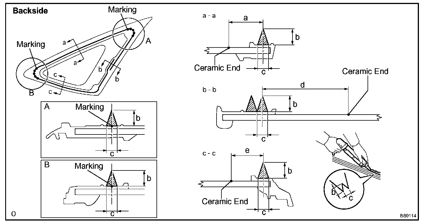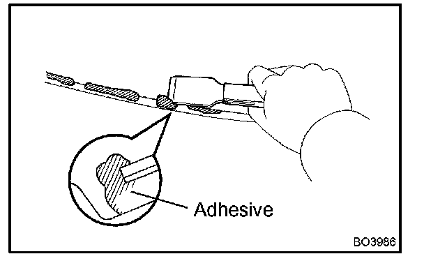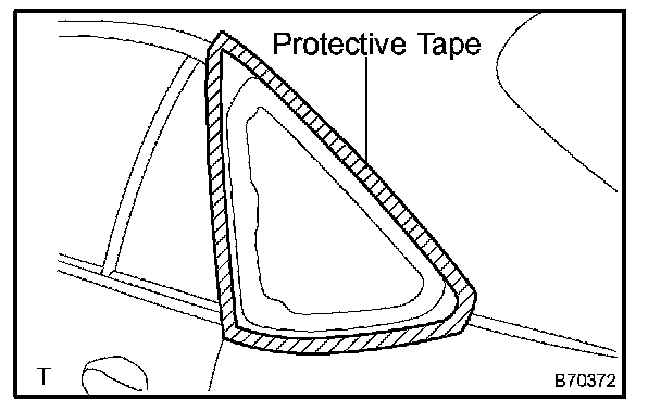 1. Hold the glass in place securely with tape or equivalent to the vehicle body until the adhesive has hardened.