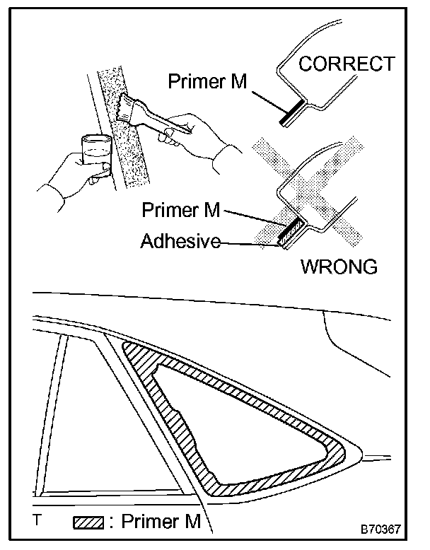 b. Using a brush, coat the exposed part of the vehicle body with Primer M.
