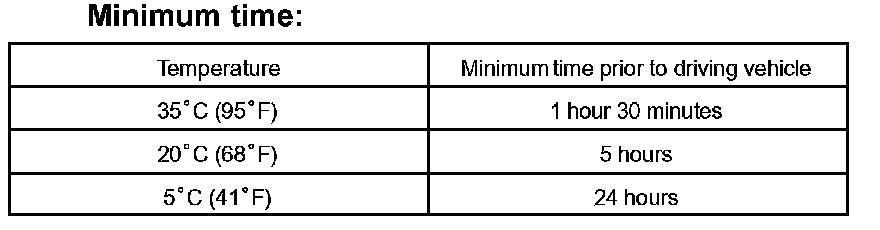 NOTE: Take care not to drive the vehicle for the time described in the table.