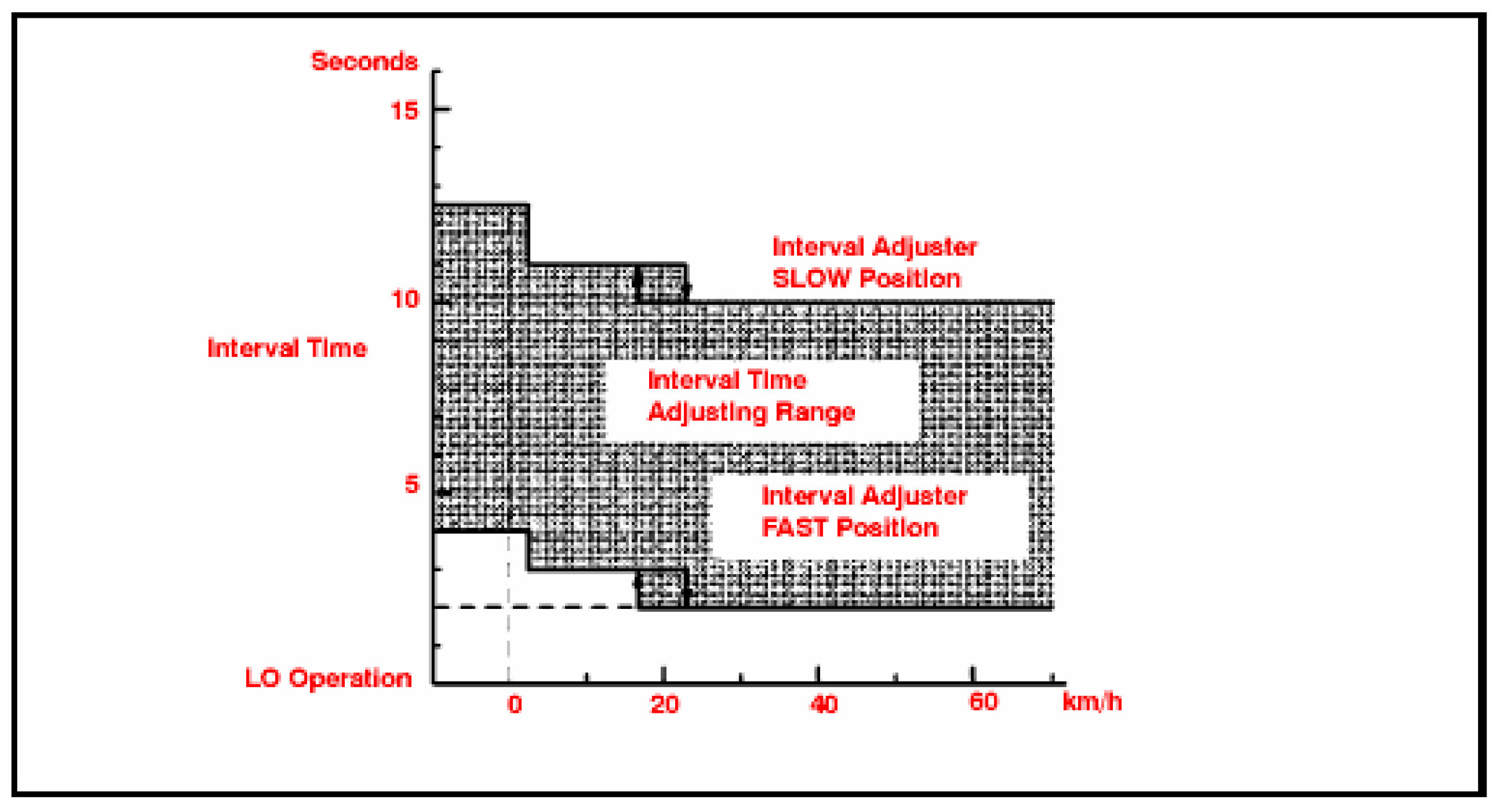 VEHICLE SPEED - SENSING, ADJUSTABLE INTERVAL (INT) FUNCTION:
