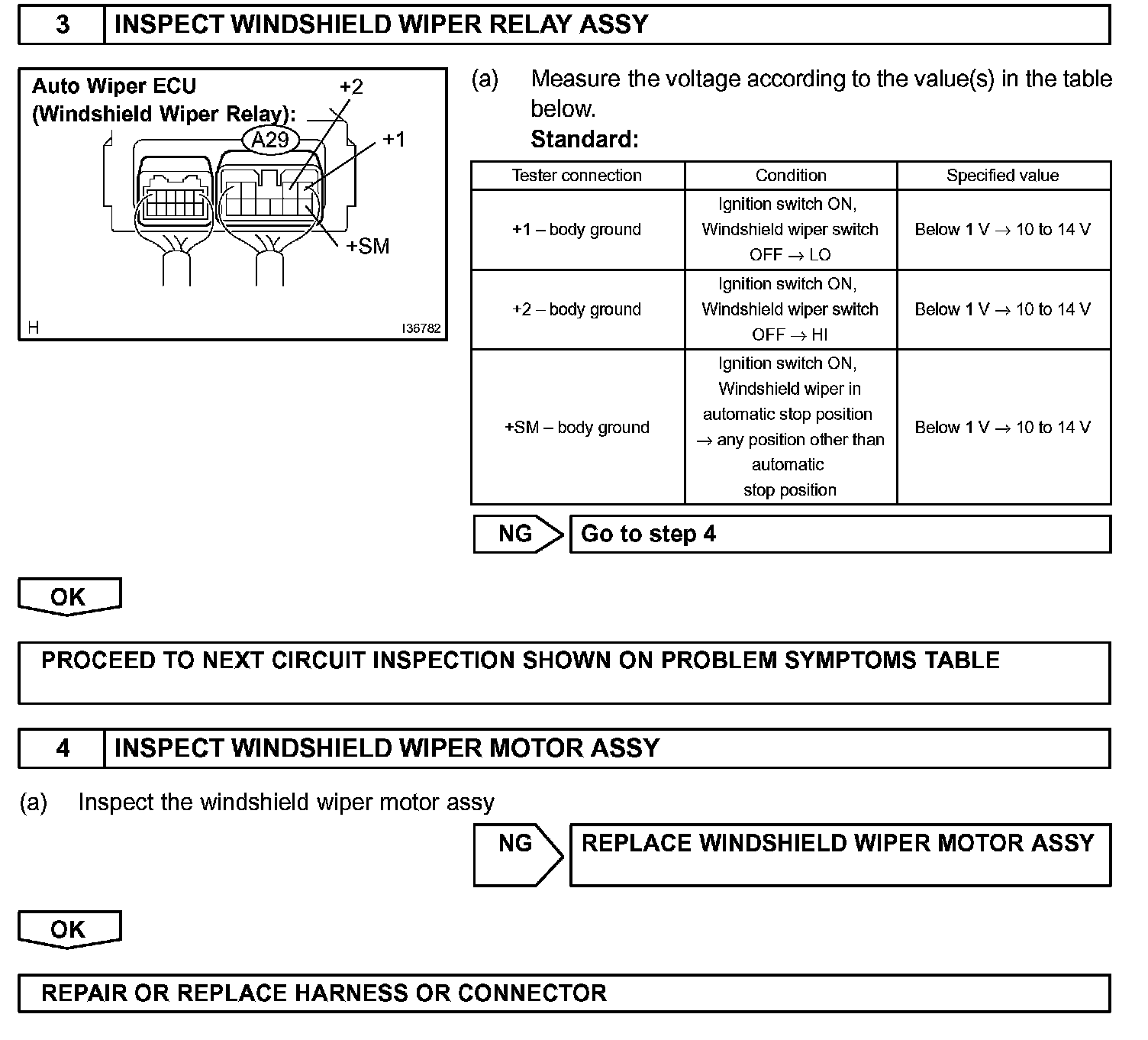 Even if the windshield wiper relay assy is in failure, its circuit structure enables operation of the front wiper.