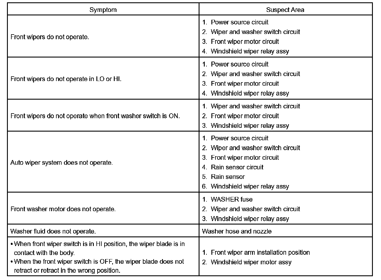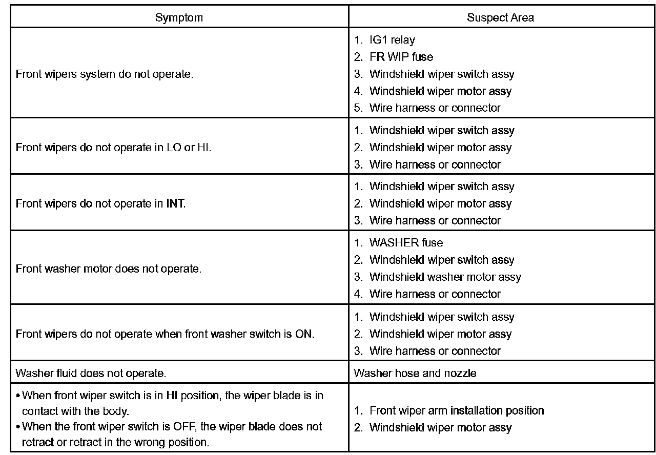Problem Symptoms Table - Front Wiper And Washer System (W/O Auto Wiper System):