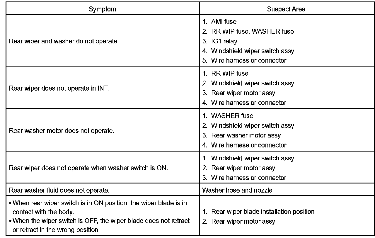 Problem Symptoms Table - Rear Wiper And Washer System: