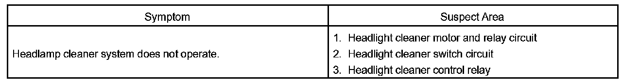Problem Symptoms Table - Headlamp Cleaner System: