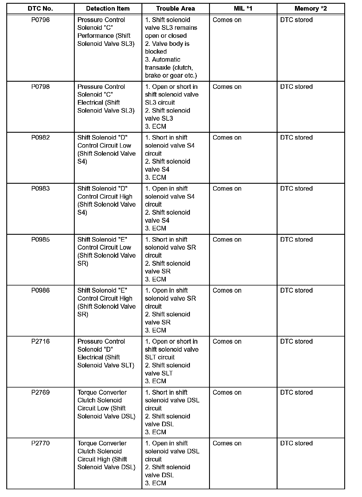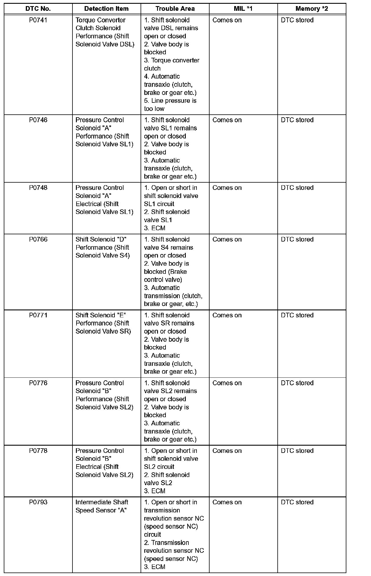 ^ This DTC may be output when the clutch, brake and gear components etc. inside the automatic transmission are damaged.