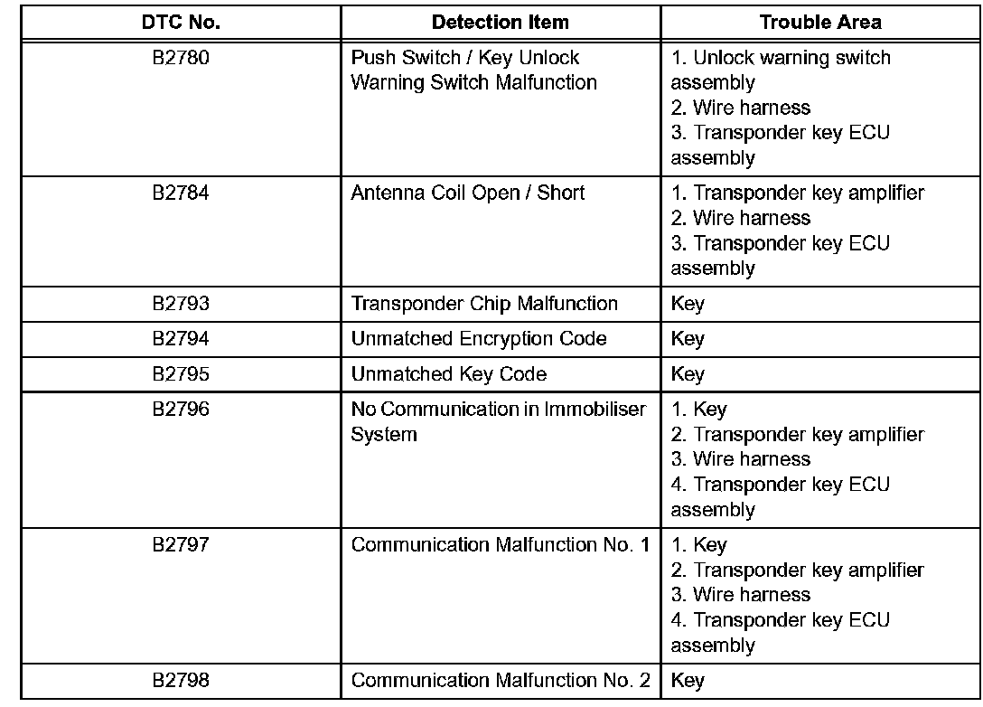 1. TRANSPONDER KEY ECU DIAGNOSTIC TROUBLE CODE CHART