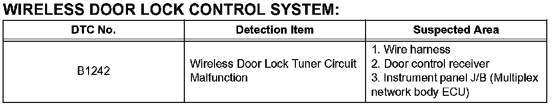 DIAGNOSTIC TROUBLE CODE CHARTB1242: