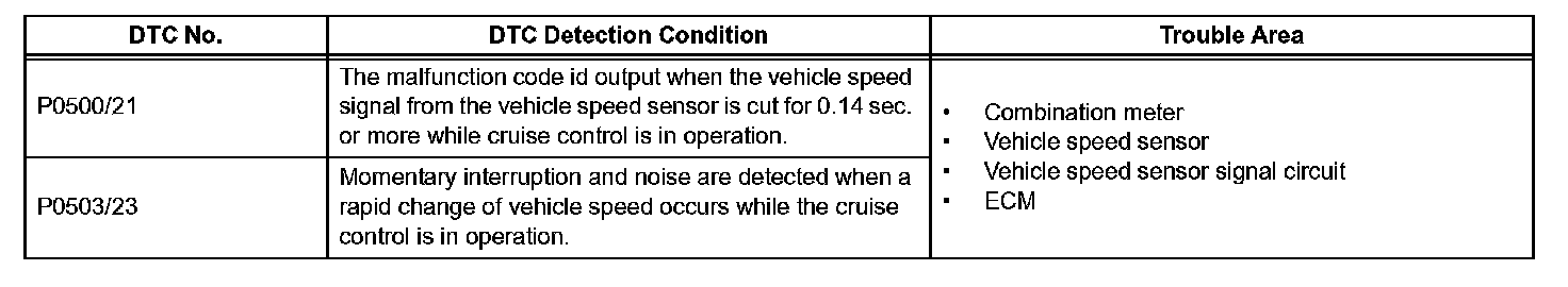 DTC P0500 Vehicle Speed Sensor MalfunctionDESCRIPTION