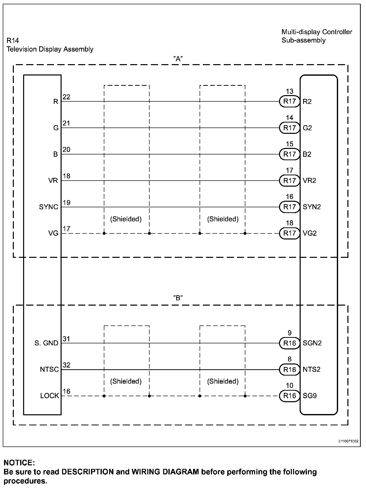Illustration "B" is the display signal circuit from the rear display assembly to the multi-display controller.