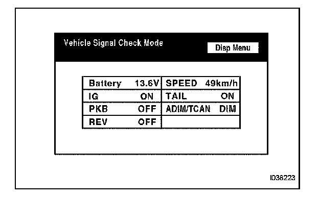 b. When the "Vehicle Signal Check Mode" screen displayed, check all the vehicle signal conditions.