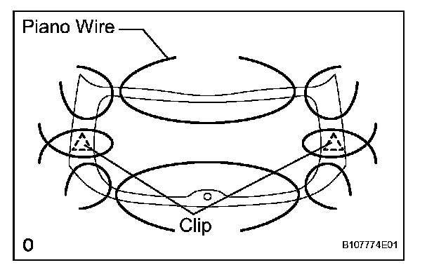 b. Pass a piano wire between the vehicle body and glass from the interior, as shown in the illustration.