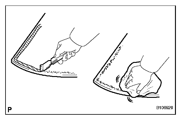 a. Using a scraper, remove the damaged stoppers, dam and adhesive sticking to the glass.