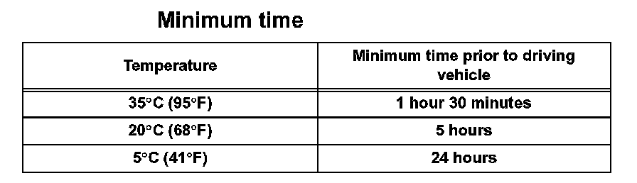 NOTE: Take care not to drive the vehicle for the time described in the table.
