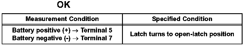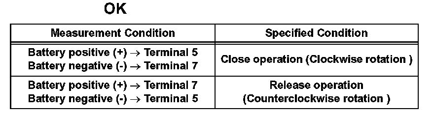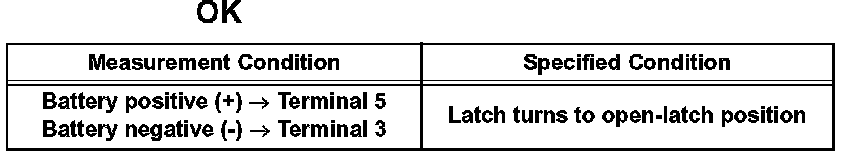 3. Apply battery voltage to the door lock motor and check operation of the motor.