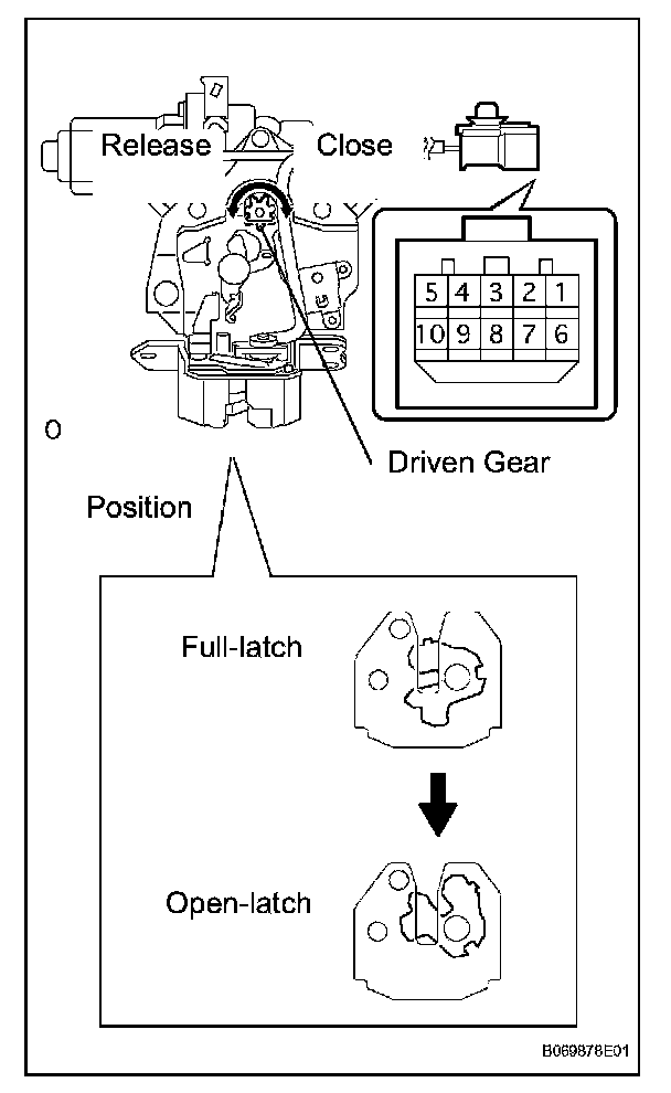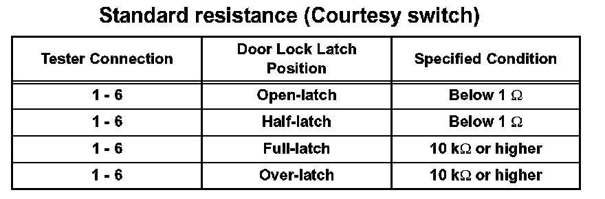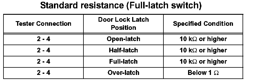 2. Apply battery voltage to the door lock and check operation of the latch.