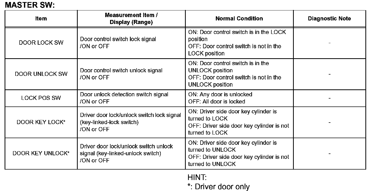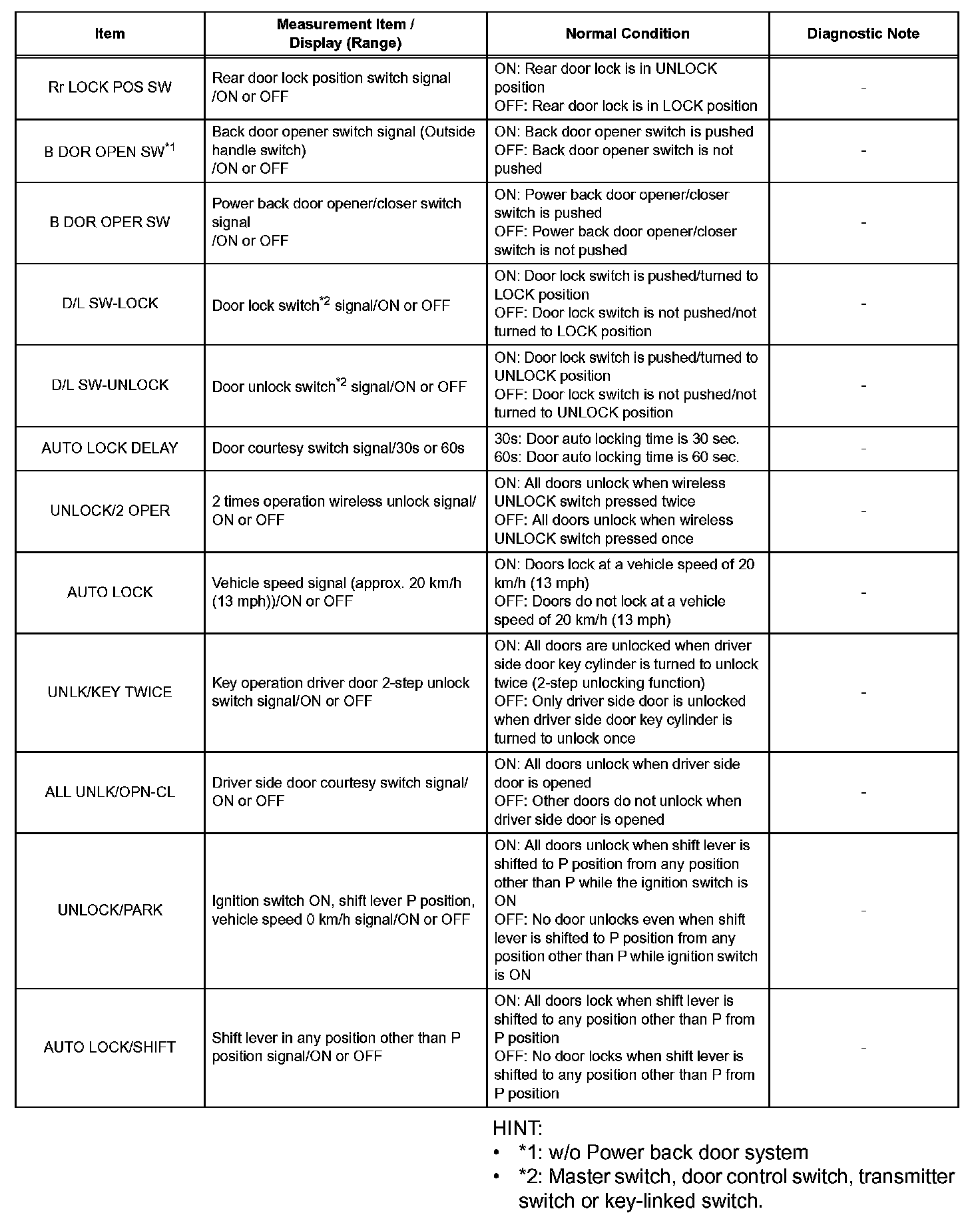 READ DATA LISTHINT: Using the intelligent tester's DATA LIST allows switch, actuator and other item values to be read without removing any parts. Reading the DATA LIST early in troubleshooting is one way to save time.