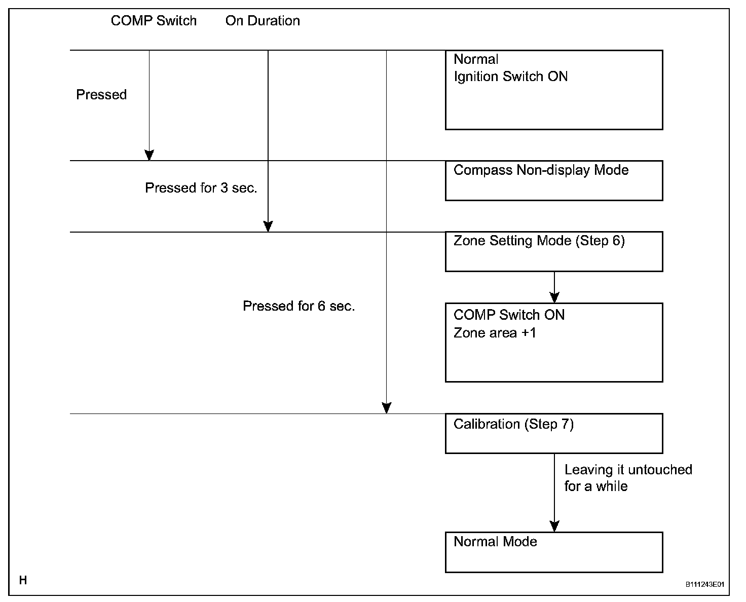 a. Pressing the COMP switch for 3 seconds in the normal mode will activate the zone setting mode. A number (1 to 15) is displayed on the compass display.